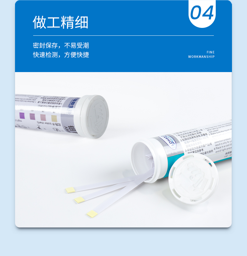 2、阴凉干燥处密封保存,取出所需试纸后应及时盖紧瓶盖,以免试纸长时间暴露在空气中受潮或者被氧化。