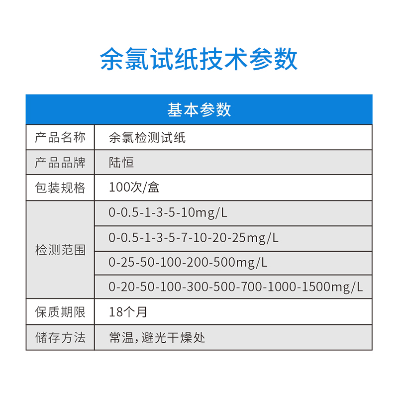 产品名称:余氯检测试纸