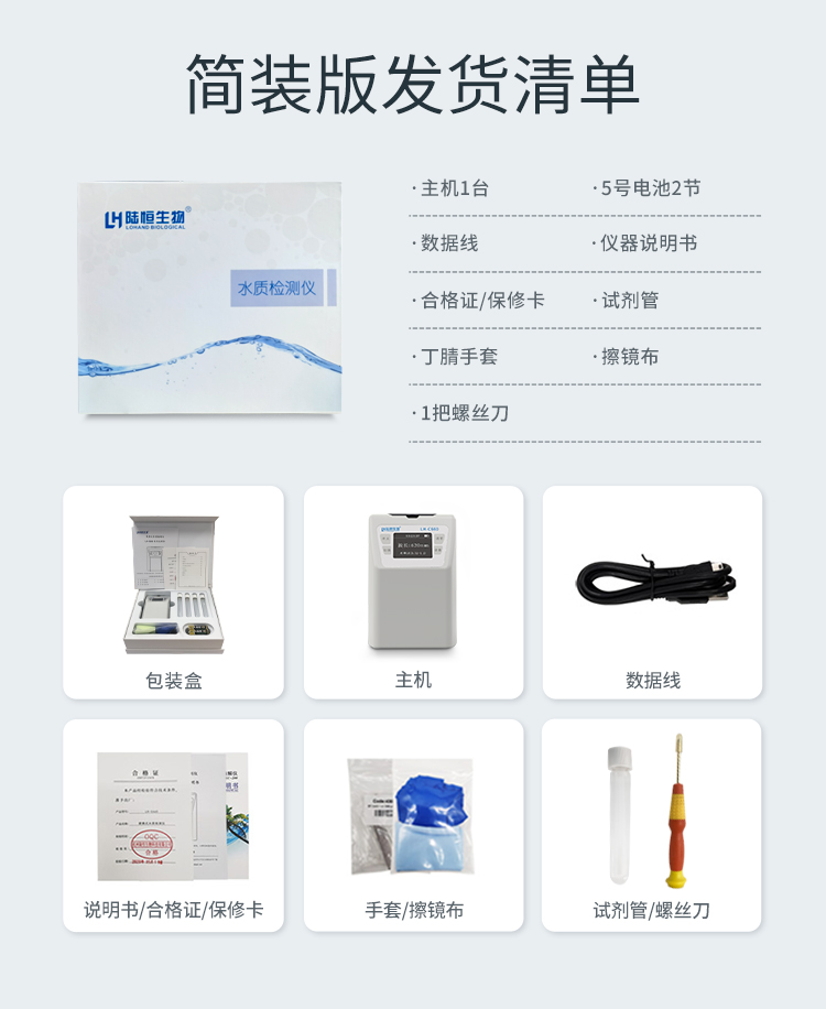 便携式水质检测仪是依据物质分子对可见光产生的特征吸收光谱及光吸收定律(朗伯-比尔定律)的原理,用未知浓度样品与已知浓度标准物质比较的方法进行定量分析的仪器。