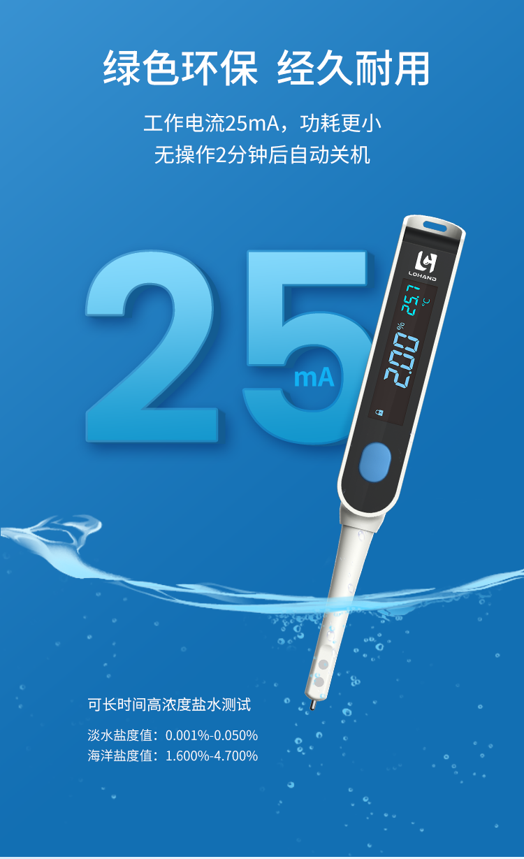 LH-SA10笔式数显盐度计是一款智能手持式盐度分析仪器,广泛应用于生活用水、家庭厨房、食品加工和水产养殖等应用场景中的盐度的检测。