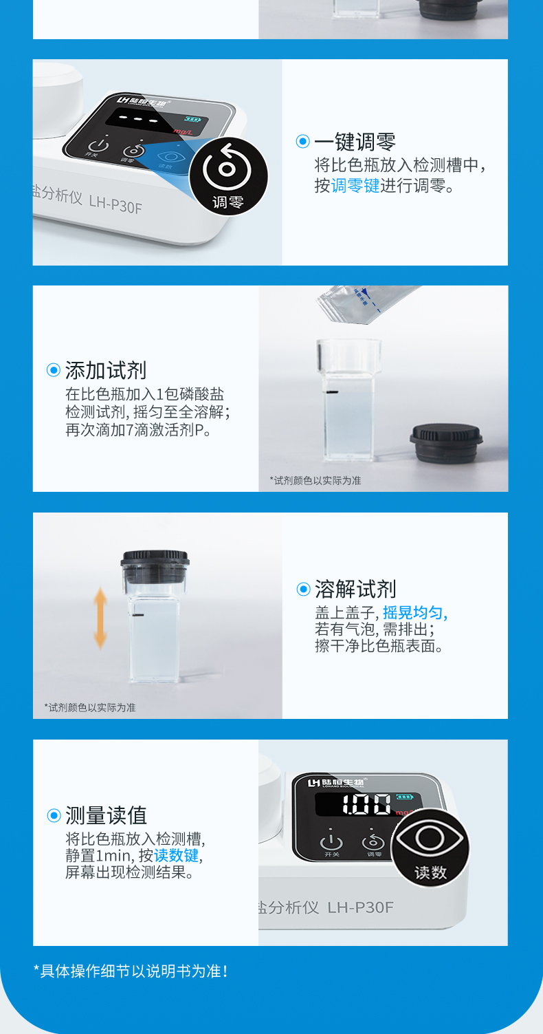 LH-P30F便携式磷酸盐检测仪,本仪器采⽤钼酸铵分光光度法,专⽤于测定⽔样中的磷酸盐浓度,⼤量实验证明此⽅法操作 简便快捷,灵敏度⾼。仪器体积⼩、重量轻、便于携带,适合野外和现场使⽤。